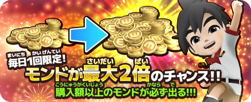 デイリーミッション報酬モンド2倍キャンペーンも現在開催中です。