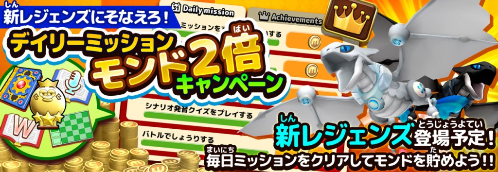 新レジェンズ登場に合わせてデイリーミッションモンド2倍キャンペーンを実施します。