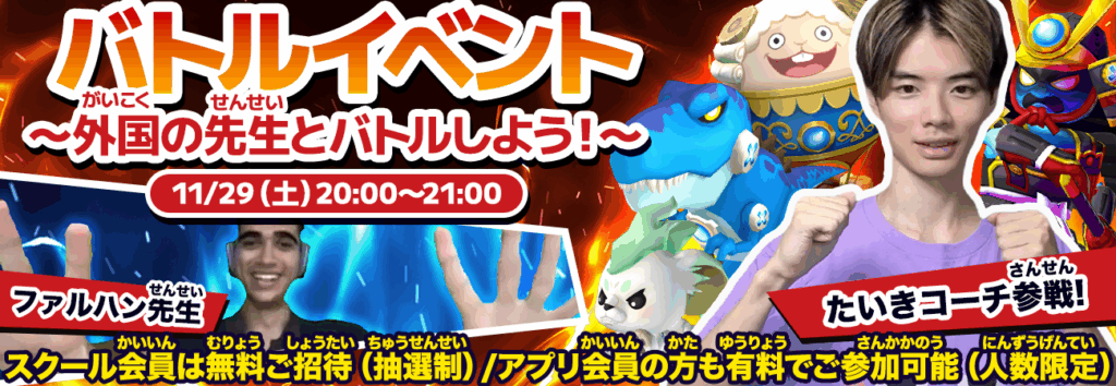 学校や英会話教室などで、外国の先生と話すことはあっても、一緒にバトルをしたことがある人はいないのではないでしょうか。