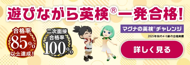 また、マグナでは、英検合格に特化した短期集中のオンライン講座も随時開講中しています。英検試験対策に特化したテクニックを専門コーチから指導しており、効率よく英検対策ができるプログラムです。詳細は以下からご確認ください。