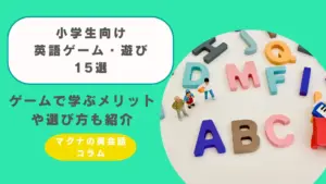 さらに、「I spy with my little eye…(何かが見えるよ…)」といった、身の回りにあるものを当てる言葉遊びは、手軽にできるアウトプットの練習になります。その他、小学生におすすめの英語ゲームは、以下の記事で詳しく紹介しています。