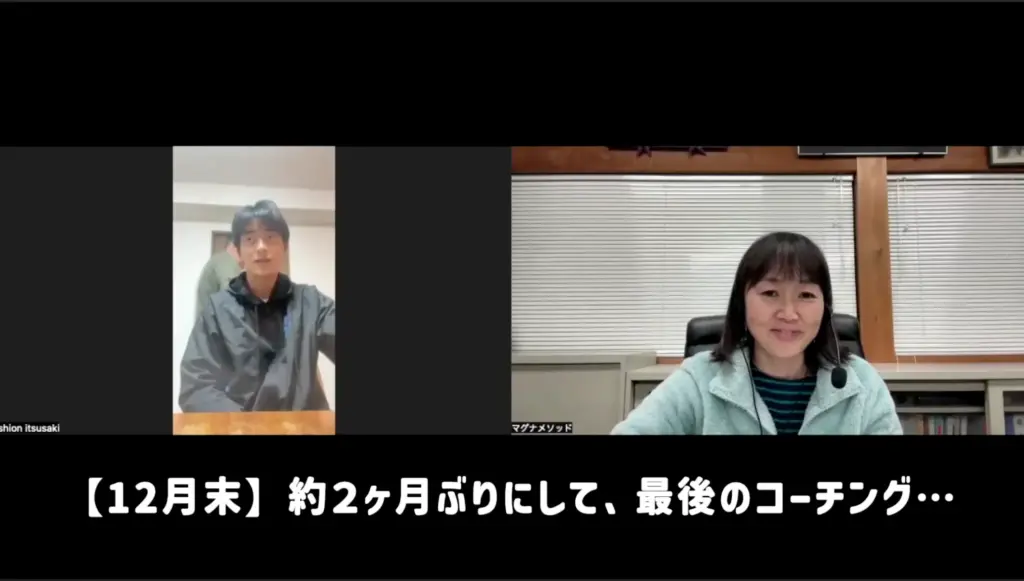 1〜2ヶ月ぶりのコーチングでは久々の英会話で詰まってしまうことがありましたが、「がむしゃらEnglish」で頑張って説明しようとする姿は健在でした。そして何よりも、コーチング最終日に日本語で今後の目標について力強く語ってくれた姿はとても頼もしく印象的でした!